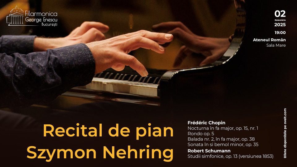 Renumitul pianist Szymon Nehring susține un recital pe scena Ateneului Român în această seară de 2 noiembrie 2025.