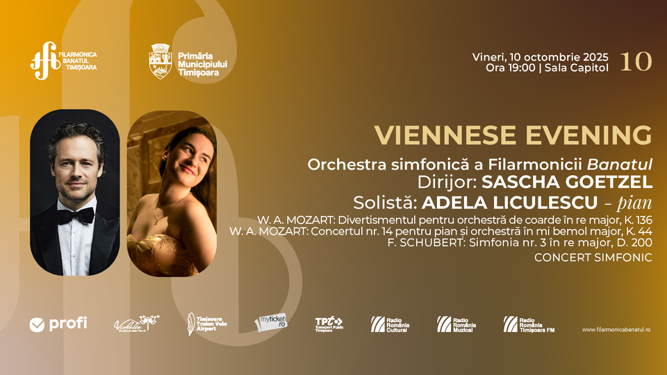 Concertul intitulat Viennese Evening va include interpretări ale unor capodopere de Wolfgang Amadeus Mozart, precum și o lucrare semnată de Franz Schubert, într-un program care celebrează frumusețea și rafinamentul muzicii din epoca clasică și cea romantică.