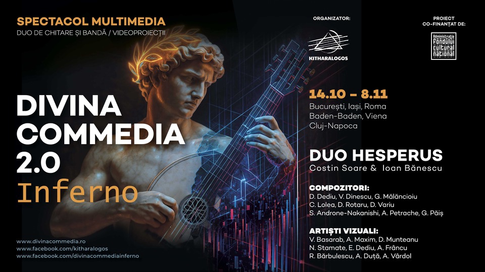 Un nou univers sonor și vizual se deschide odată cu lansarea Turneului Internațional "Divina Commedia 2.0 - Inferno", un spectacol interdisciplinar care reinterpretează Infernul dantesc în cheia sensibilităților contemporane.