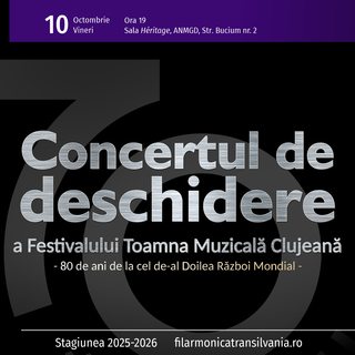 Concertul de deschidere a Festivalului Toamna Muzicală Clujeană, ediția a 58-a – 80 de ani de la cel de-al Doilea Război MondialPublicat: marți, 7 Octombrie 2025