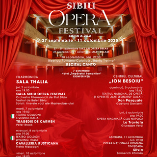 Sibiu Opera Festival prezintă spectacolul „Cavalleria rusticana”Publicat: miercuri, 8 Octombrie 2025 |