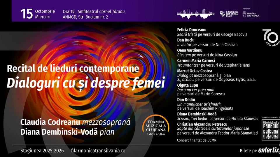 Filarmonica „George Enescu" propune astăzi, 15 octombrie 2025, două evenimente.